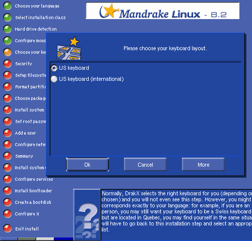 DrakX will have already selected a keyboard layout determined by your preferred language earlier in the installation.